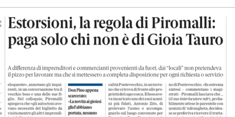 Estorsioni, la regola di Piromalli: paga solo chi non è di Gioia Tauro