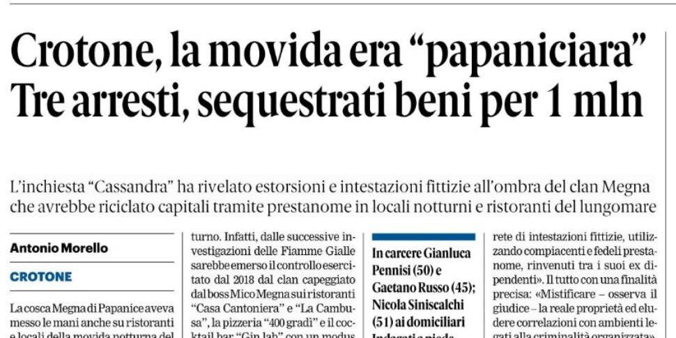 – Crotone, le mani della cosca dappertutto: “Non vendere drink al banco”, e giù botte e attentati