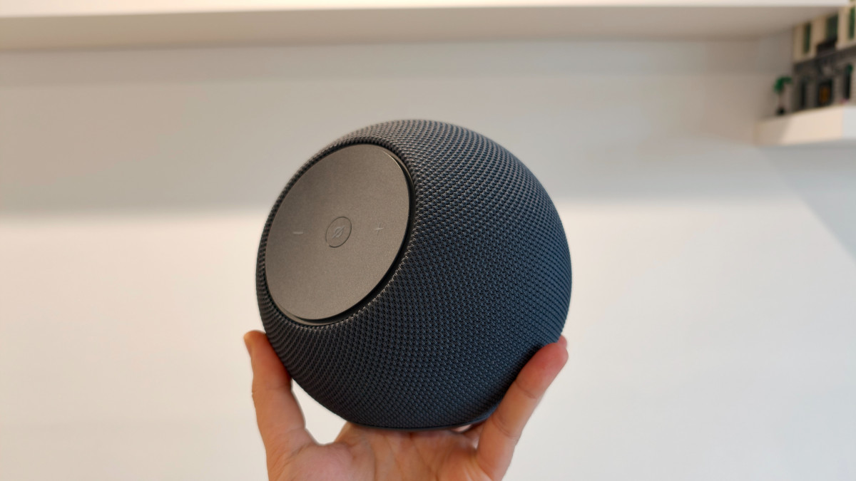 Il rivestimento è una maglia tessile 3D che copre quasi tutta la sfera, con un pannello frontale in plastica opaca dove trovano posto i tasti fisici (volume e mute microfono) e il nuovo anello LED di Alexa, spostato appunto sul frontale invece che in cima. Questo lo rende molto più visibile anche da lontano e frontalmente, comodo se lo usate anche come controllo domotico e non solo come speaker per la musica.