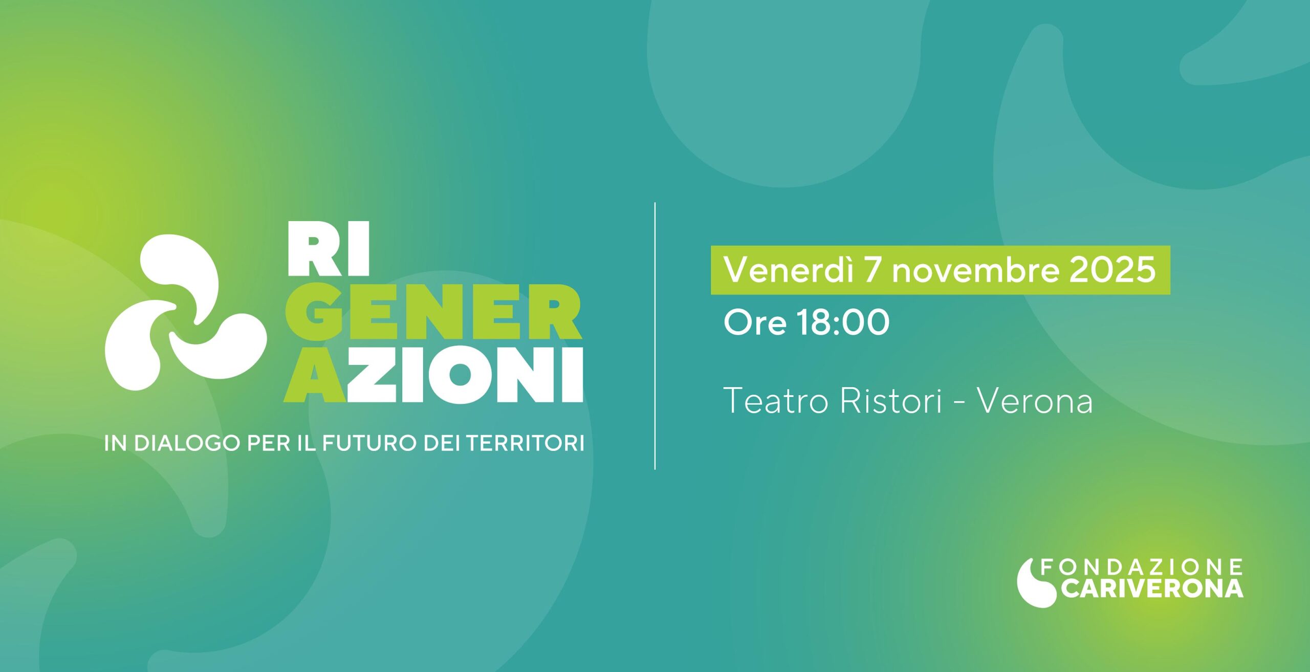 Per iscrizioni all’evento “RiGenerazioni – In dialogo per il futuro dei territori” di venerdì 7 novembre, ore 18, al Teatro Ristori di Verona (partecipazione gratuita previa registrazione): https://www.eventbrite.it/e/biglietti-rigenerazioni-in-dialogo-per-il-futuro-dei-territori-1802675293329?aff=oddtdtcreator