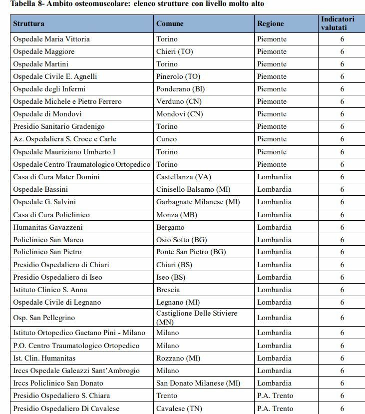 Sei ospedali marchigiani hanno un livello molto alto nell’ambito osteomuscolare