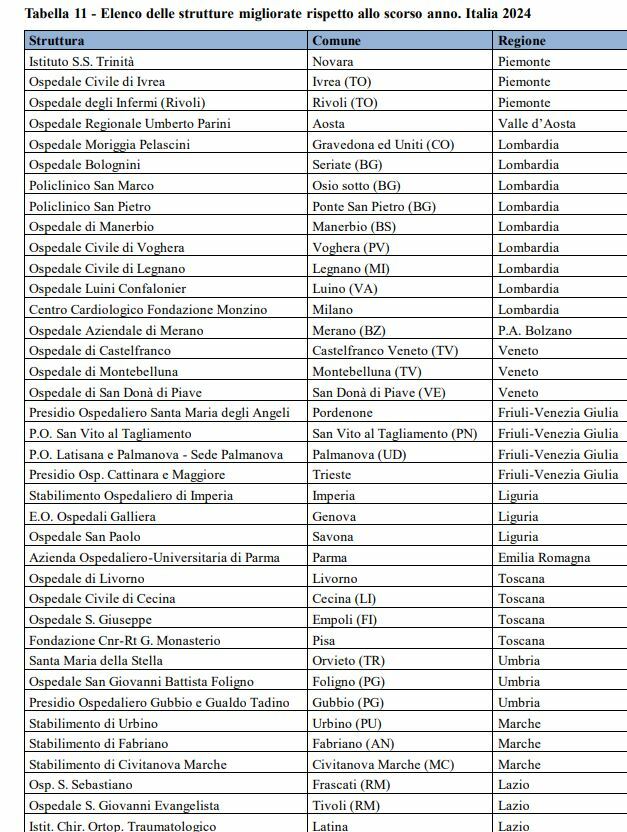 Tra le strutture ospedaliere che hanno migliorato i loro indici nelle Marche ci sono gli ospedali di Urbino, di Fabriano e di Civitanova.