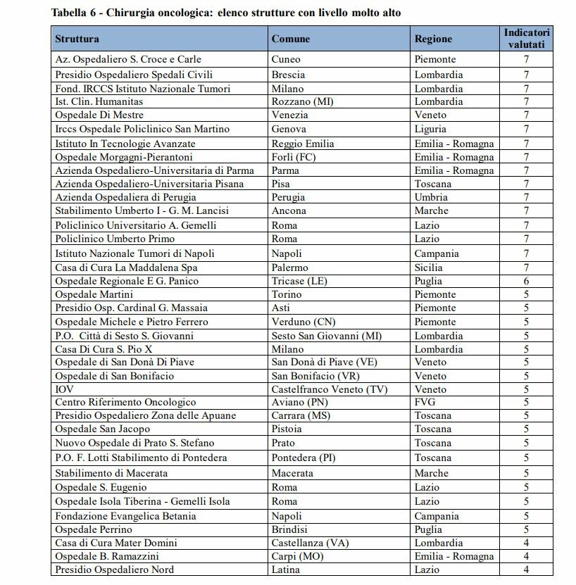 Due ospedali nelle Marche hanno un livello molto alto in chirurgia oncologica