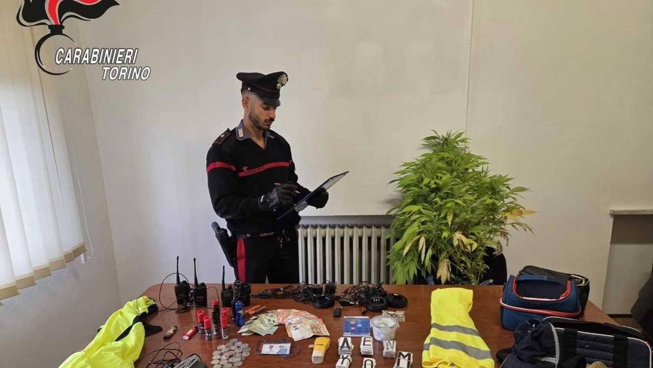 La perquisizione è scattata nei giorni scorsi, con l’aiuto dei militari del Nucleo Radiomobile e del Nucleo Investigativo del comando provinciale di Torino, oltre al Nucleo Cinofili di Volpiano. I tre, che vivono fra Montalenghe e San Giusto Canavese, avevano in casa l’intero “kit del truffatore”: sette bombolette spray al peperoncino e altrettante mascherine chirurgiche, quattro ricetrasmittenti comprensive di auricolari, il falso detector, un tesserino con il logo dell’Arma, berretto, guanti, giubbotti catarifrangenti, gli adesivi e 640 euro suddivisi in banconote di vario taglio. Ma anche due carnet di buoni pasto da 400 euro, una pianta di cannabis alta 1 metro e 20. E, sotto il sedile dell’auto parcheggiata in cortile, c’erano 26 monete d’argento da 500 lire.