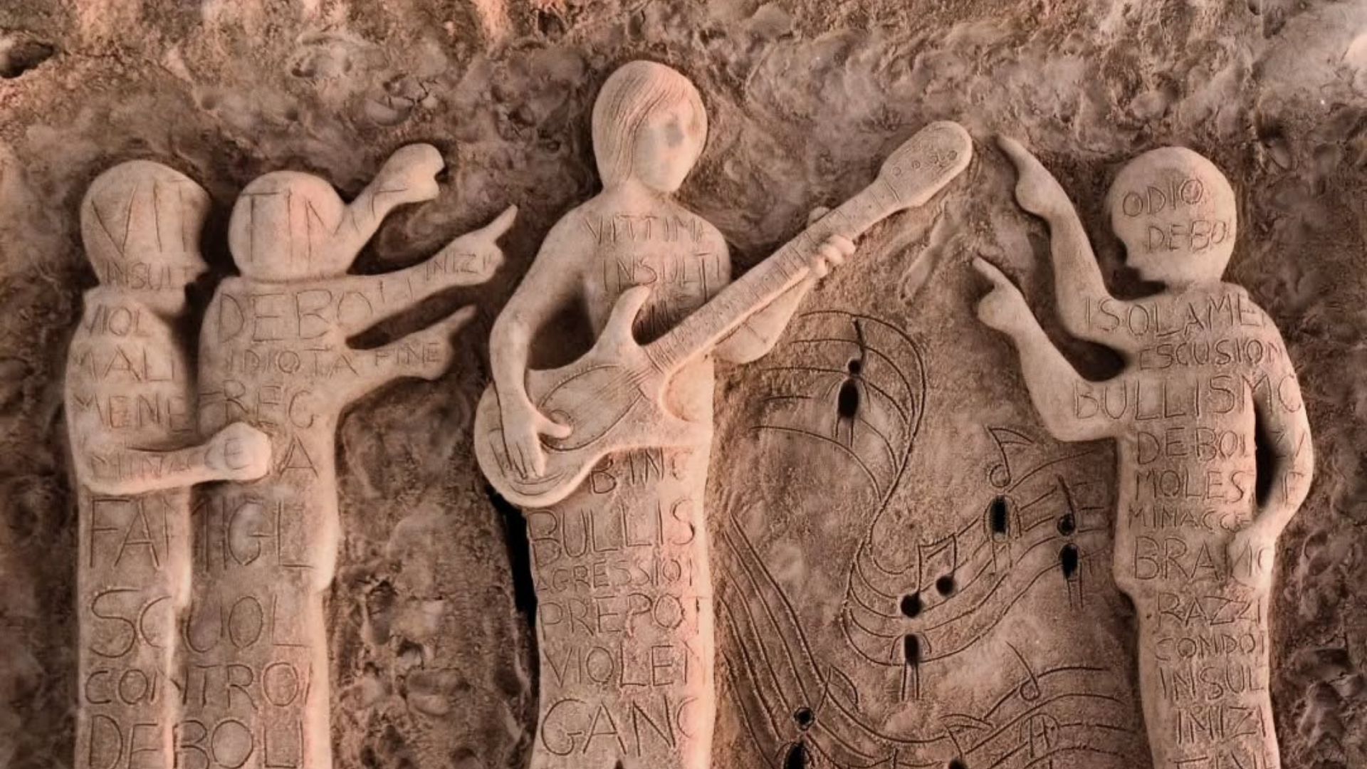 “Bullismo, scuola, casa, lavoro, strada, vita in generale. La paura del confronto di vedersela con alunni e professori. A volte genitori, seduti su un tavolino di un bar, che avallano le condotte dei figli, essendo stati essi stessi educati a forme più o meno larvate di razzismo, classismo, omotransfobia, sessismo” ha commentato lo scultore sui social.