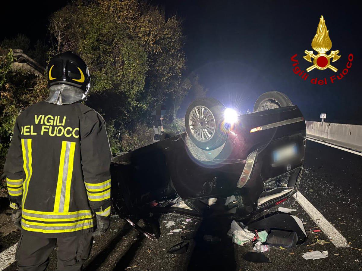 Si cappotta con l’auto lungo la superstrada