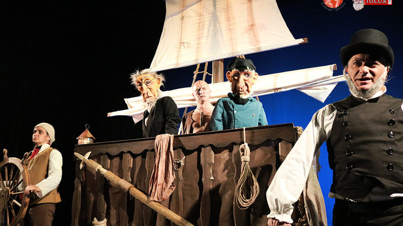 Riedizione e rivisitazione di un classico senza tempo dei Guardiani dell’Oca, ovvero “Moby Dick”, in coproduzione con il Teatro Stabile d’Abruzzo. Lo spettacolo, liberamente tratto dal celebre romanzo di Herman Melville, racconta il mitico viaggio di Ismaele, che, alla ricerca del gusto dell’avventura, si imbarca sulla baleniera Pequod e naviga tra onde impetuose e incontri straordinari. Nel cuore dell’oceano si apre la grande sfida contro la gigantesca balena bianca, simbolo di un mistero e di un desiderio di conoscenza che spinge ogni uomo verso l’ignoto. La narrazione si sviluppa attraverso un linguaggio scenico coinvolgente che unisce teatro d’attore, pupazzi, sagome e ombre, offrendo un’esperienza viva e poetica per grandi e piccini. Questa messa in scena esalta l’essenzialità delle tecniche teatrali, fondendo leggerezza ed emozione, con dialoghi intensi, momenti comici e immagini poetiche che invitano il pubblico a riflettere sul coraggio, l’amicizia e le sfide che la vita ci pone di fronte.