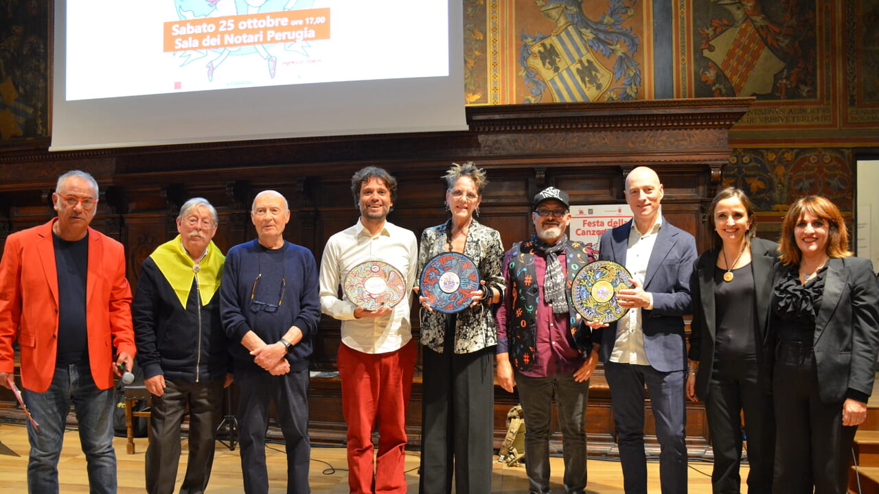 Tra i momenti più emozionanti, la prima volta nella storia del concorso che a essere premiati sono stati due concorrenti equamente classificati per il terzo posto: Roberto Cecchetti con “Il genio e la città” e il Trio d’Arna con “J’amici del nemico”. La tensione e l’entusiasmo sono cresciuti con il secondo classificato, Antonella Falteri e il suo “Via della Sposa”, fino alla proclamazione del vincitore, Tito Zoe Chiacchiera, che con “La voce della tramontana” ha conquistato il cuore di tutti, ricevendo il meritato riconoscimento di “Canzone perugina 2025”. (Chi è Tito Zoe Chiacchiera? Cresciuto e vissuto a Perugia. Dal 2011 si trasferisce a Roma: la grande città lo arricchisce e gli apre la mente, senza tuttavia privarlo delle proprie radici. Più avanti “riscopre” la canzone d’autore italiana e la chitarra acustica. A Parigi si innamora dello stile di Georges Brassens. “La voce della Tramontana” si ispira a Walter Binni, perugino inquieto, che con Leopardi e Capitini sognava «una realtà liberata e fraterna»).