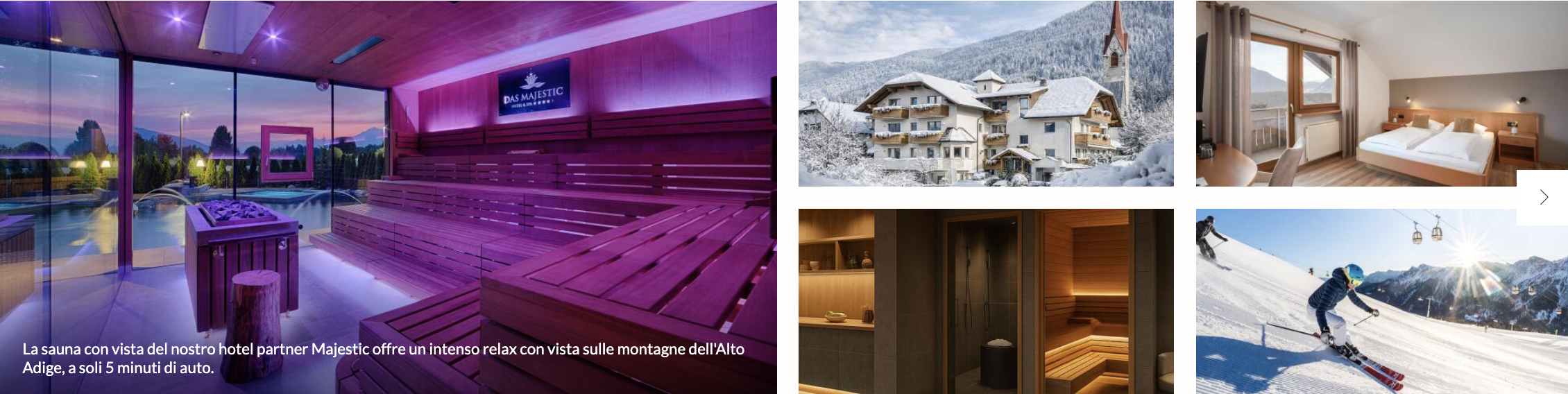 E se desideri ancora più spazio per un relax profondo, la tua esperienza benessere si amplia in modo rilassante: a soli cinque minuti di auto, l’hotel partner Majestic apre le porte a un mondo spa e benessere di 1.200 m², dove calore, acqua e ambiente elegante armonizzano corpo e mente.