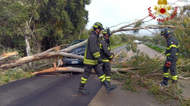 Tra gli episodi più rilevanti si registra quanto accaduto ad Arzachena, dove un eucalipto è caduto sulla Sp13, coinvolgendo un furgone e un’auto. La pianta ha bloccato completamente la circolazione in entrambe le direzioni, causando l’interruzione della viabilità. Fortunatamente non risultano feriti. Sul posto è intervenuta anche la Polizia Locale di Arzachena.
